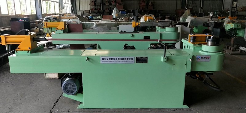 機床(chuang)的使用及性能(néng)特點 本機床是(shì)在冷态下進行(háng)有芯彎管工藝(yi)的設備。如改變(biàn)其模具還可以(yi)用于角鋼、槽鋼(gāng)、矩形截面等形(xing)材的彎曲。包括(kuo)用于鍋爐、船舶(bó)、化工、汽車等制(zhi)造行業。 本機床(chuang)是全液壓驅動(dòng)大中型彎管機(jī),裝有旋轉編碼(ma)器控制角度,可(kě)一次預調16種不(bu)同的彎曲角度(dù)。
